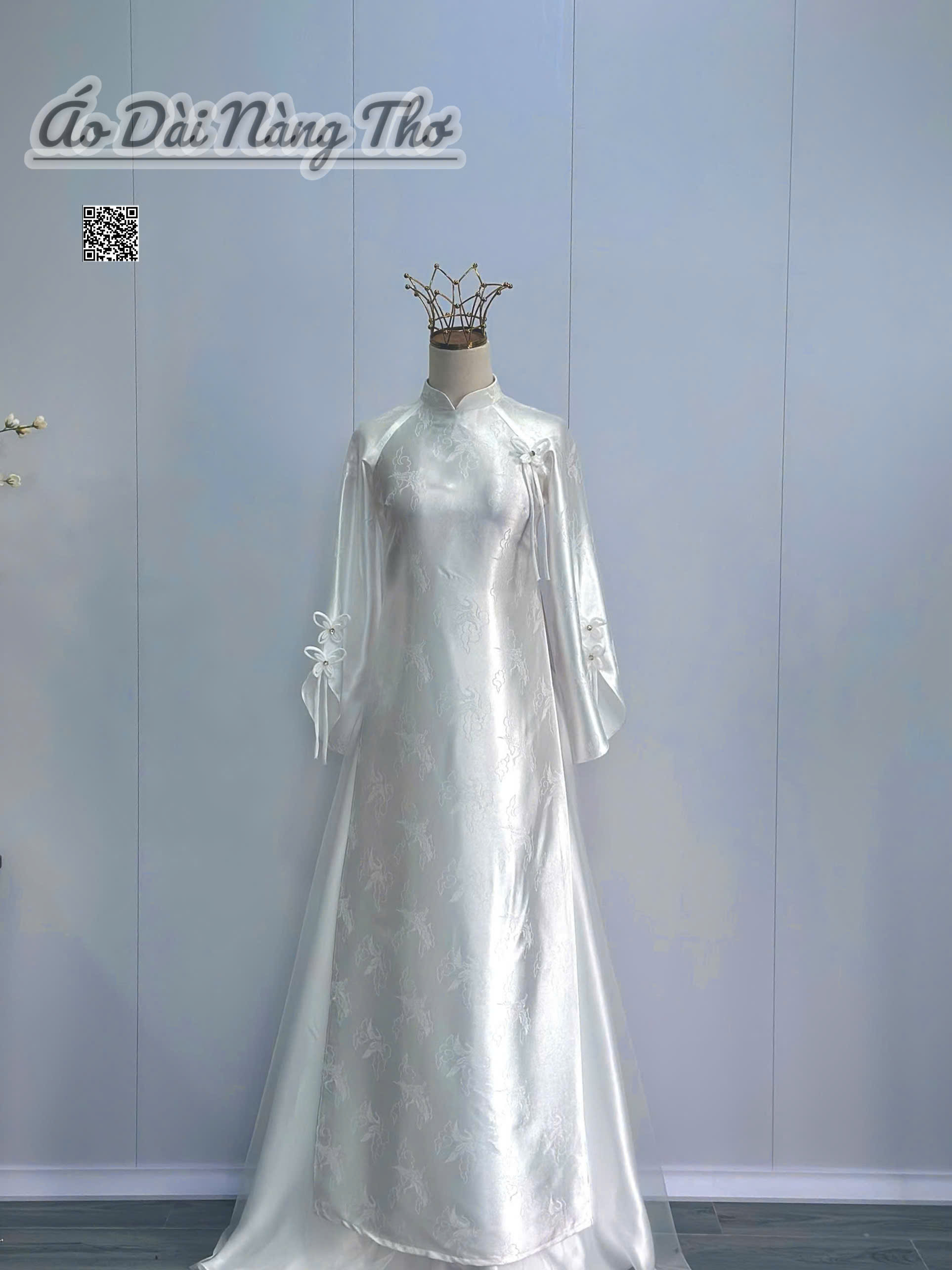 Không chỉ đem đến cho cô dâu, chú rể vẻ đẹp thanh lịch trong ngày vui trọng đại, Áo Dài Cưới còn thể hiện sự biết ơn, nhớ về cội nguồn của người con đất Việt. Những mẫu áo dài cưới của ÁO DÀI NÀNG THƠ vừa hiện đại vừa sang trọng lại cực kì hút mắt chắc chắn sẽ là chiếc áo dài cưới đẹp như mơ ước của những nàng dâu trẻ. Kết hợp cùng hoạ tiết thêu hoa bắt mắt chắn chắn sẽ khiến bao ánh mắt ngắm nhìn.