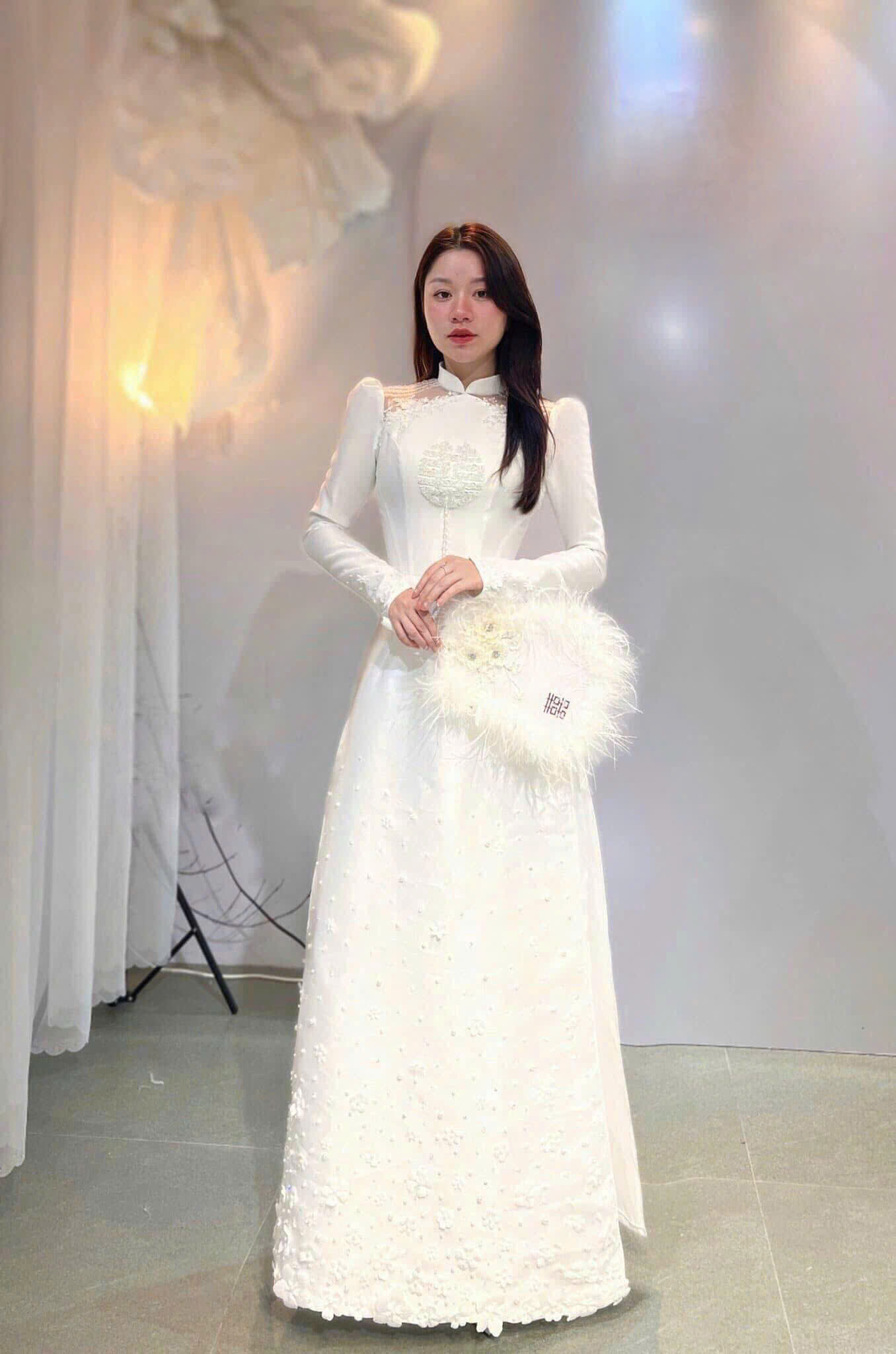 • Áo Dài Cô Dâu Tay Phồng Phối Lưới Cách Điệu