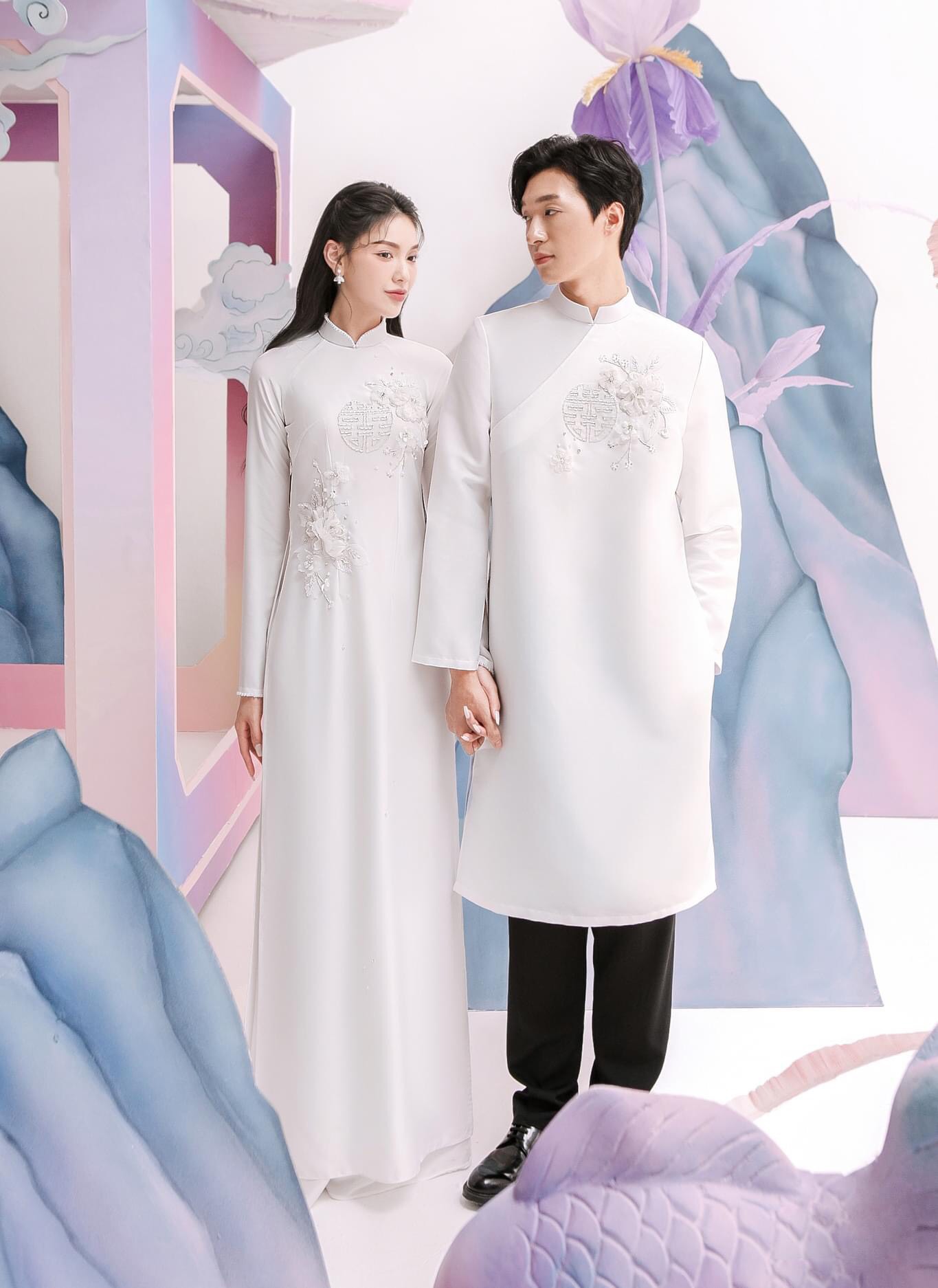 • Áo Dài Cưới Cặp Đôi Màu Trắng Sang Trọng Hiện Đại