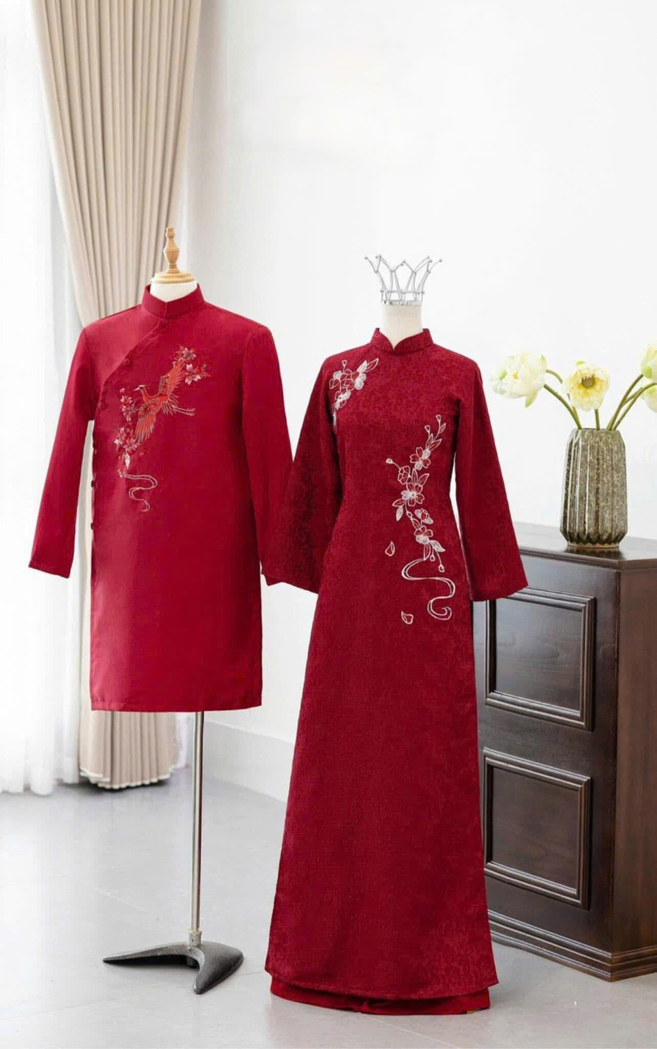 Bên cạnh những mẫu trang phục cưới theo phong cách phương Tây như váy cưới lộng lẫy, áo vest lịch lãm thì những mẫu Áo Dài  cưới cặp luôn là lựa chọn của nhiều cô dâu, chú rể. ÁO DÀI NÀNG THƠ...