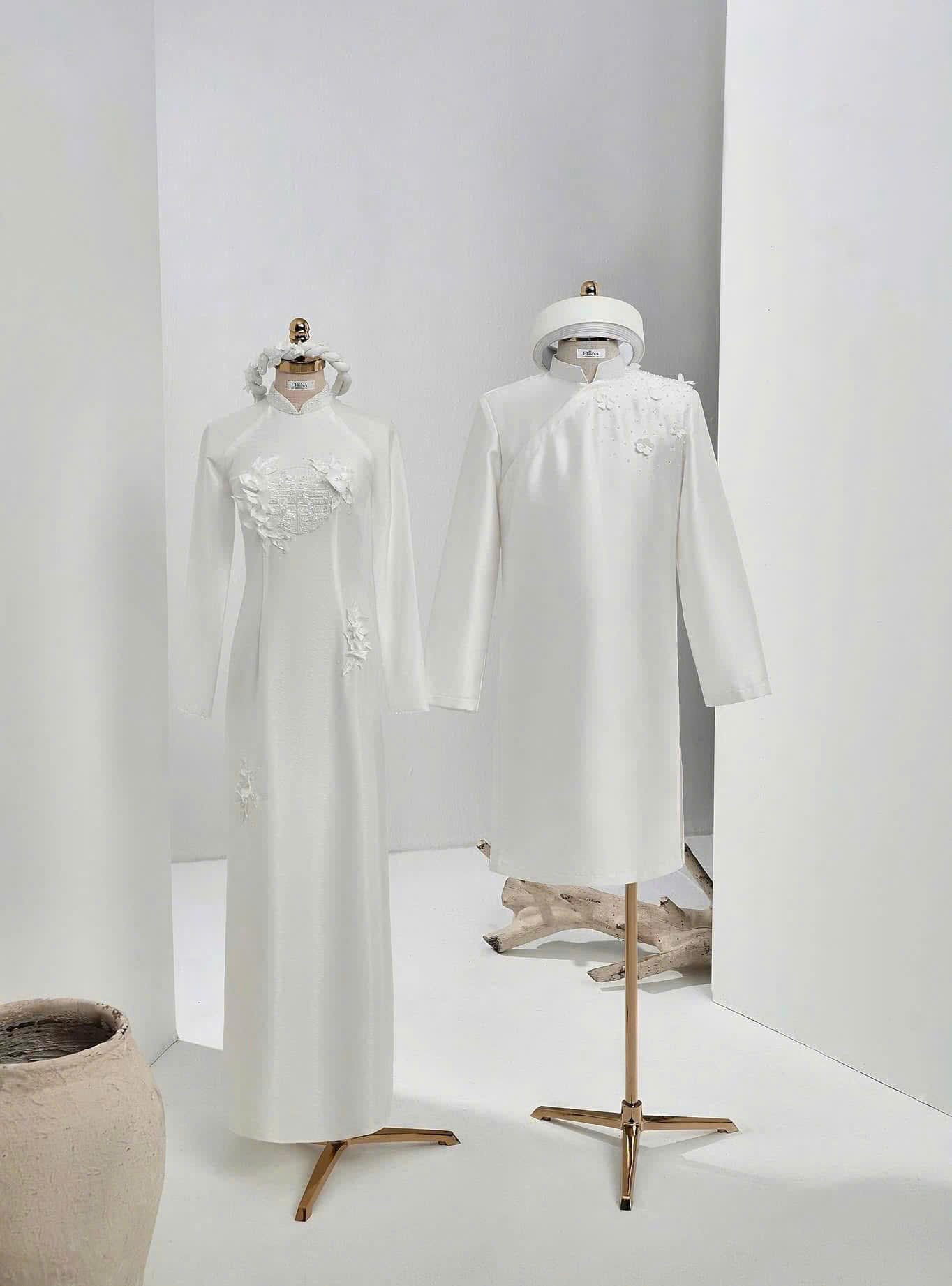 Bên cạnh những mẫu trang phục cưới theo phong cách phương Tây như váy cưới lộng lẫy, áo vest lịch lãm thì những mẫu Áo Dài  cưới cặp luôn là lựa chọn của nhiều cô dâu, chú rể. ÁO DÀI NÀNG THƠ...