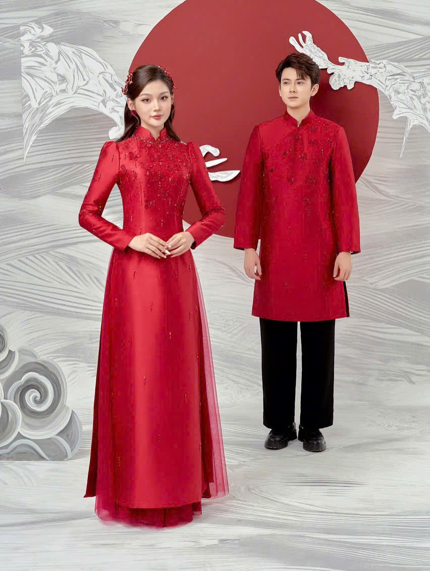 Bên cạnh những mẫu trang phục cưới theo phong cách phương Tây như váy cưới lộng lẫy, áo vest lịch lãm thì những mẫu Áo Dài  cưới cặp luôn là lựa chọn của nhiều cô dâu, chú rể. ÁO DÀI NÀNG THƠ...