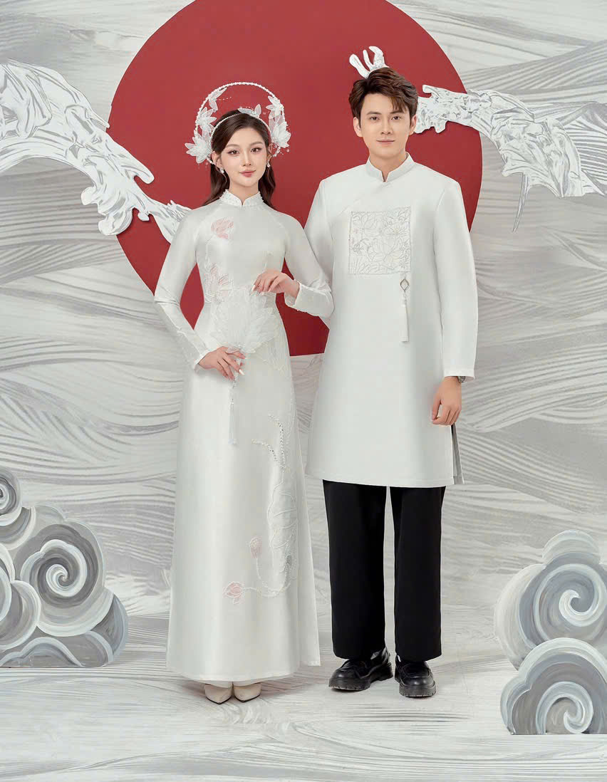 Bên cạnh những mẫu trang phục cưới theo phong cách phương Tây như váy cưới lộng lẫy, áo vest lịch lãm thì những mẫu Áo Dài  cưới cặp luôn là lựa chọn của nhiều cô dâu, chú rể. ÁO DÀI NÀNG THƠ...