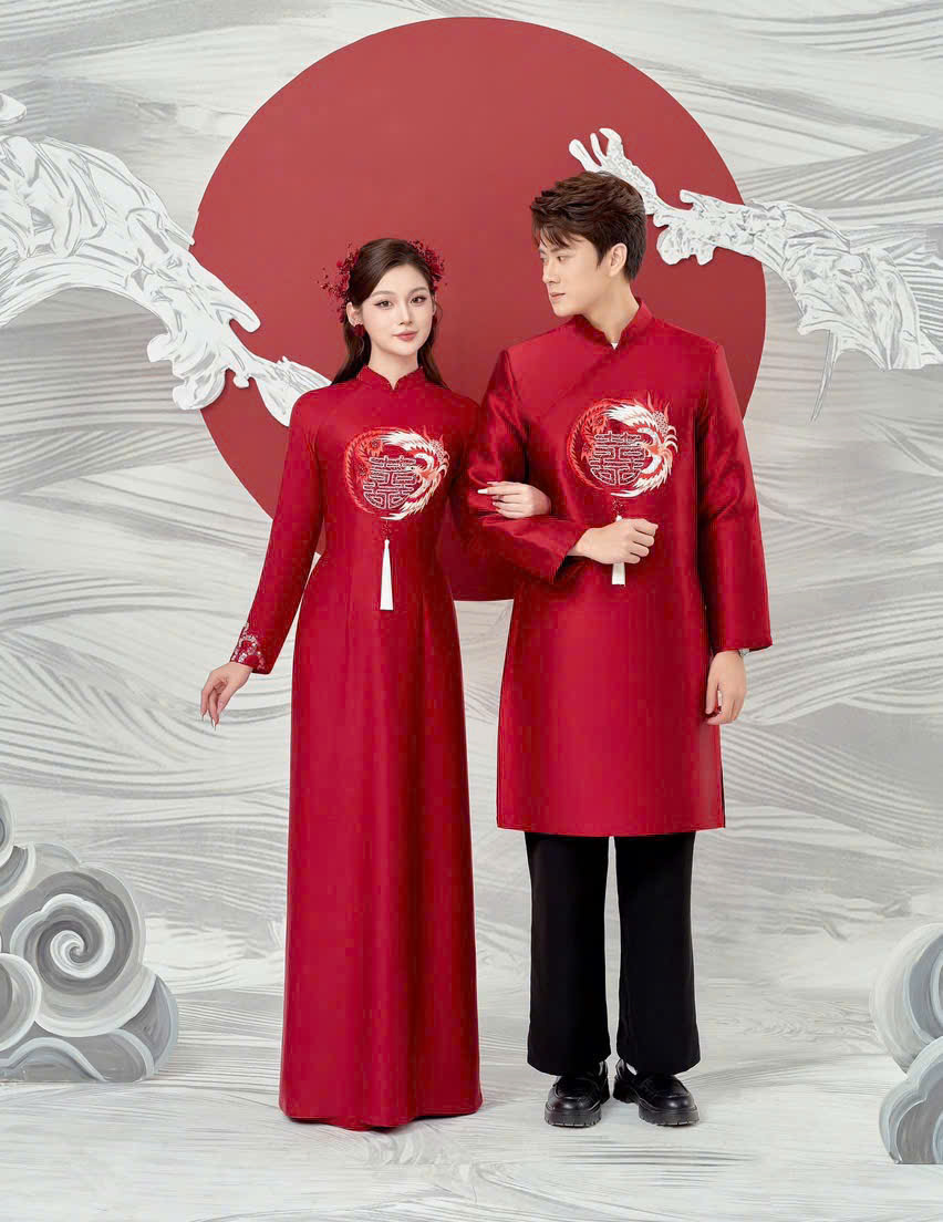 Bên cạnh những mẫu trang phục cưới theo phong cách phương Tây như váy cưới lộng lẫy, áo vest lịch lãm thì những mẫu Áo Dài  cưới cặp luôn là lựa chọn của nhiều cô dâu, chú rể. ÁO DÀI NÀNG THƠ...