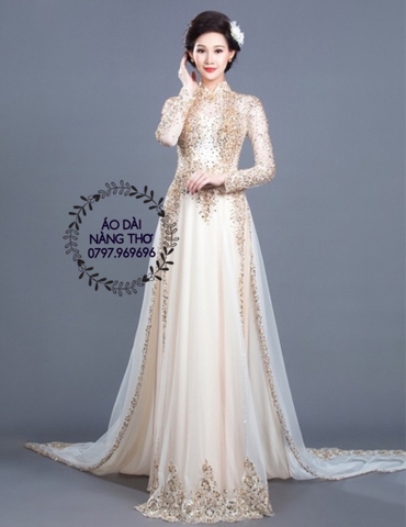 ÁO DÀI REN ĐÍNH HẠT CAO CẤP CD0010