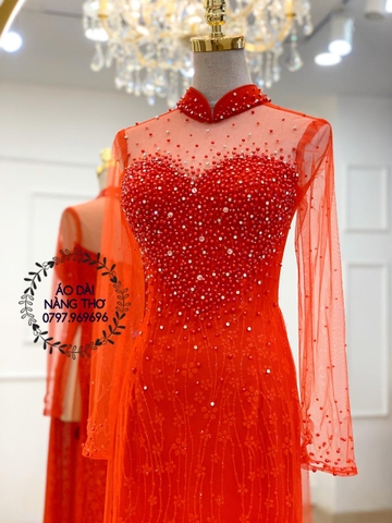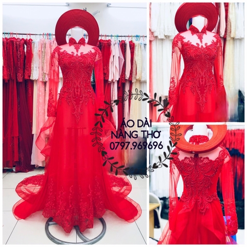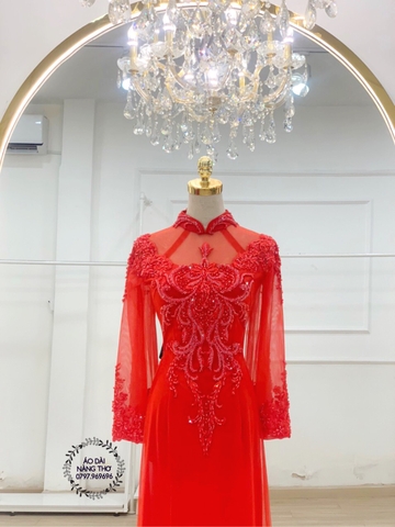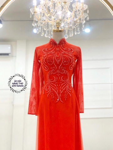 Áo dài Cô Dâu Ren Lưới Màu Đỏ Đính Hạt Cao Cấp WR0072