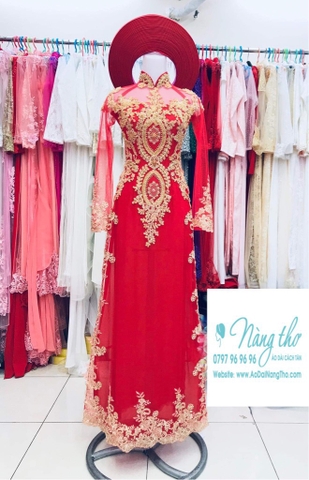 Áo dài cô dâu màu đỏ may sẵn WR0066