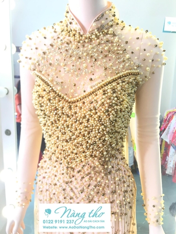 ÁO DÀI REN LƯỚI ĐÍNH HẠT CAO CẤP CD0007