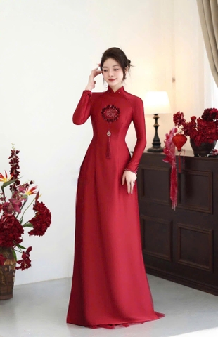 Áo Dài Cô Dâu Họa Tiết Hỷ Thêu Hoa Sang Trọng CD0239