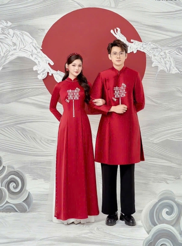 Áo Dài Cưới Họa Tiết Hỷ Đính Đá Nổi Bật CP0248