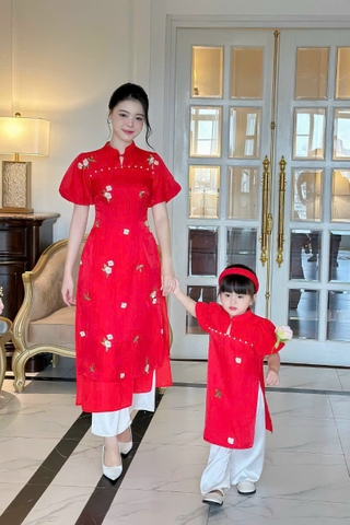 Áo Dài Mẹ Bé Lụa 3D Trẻ Trung MB0120