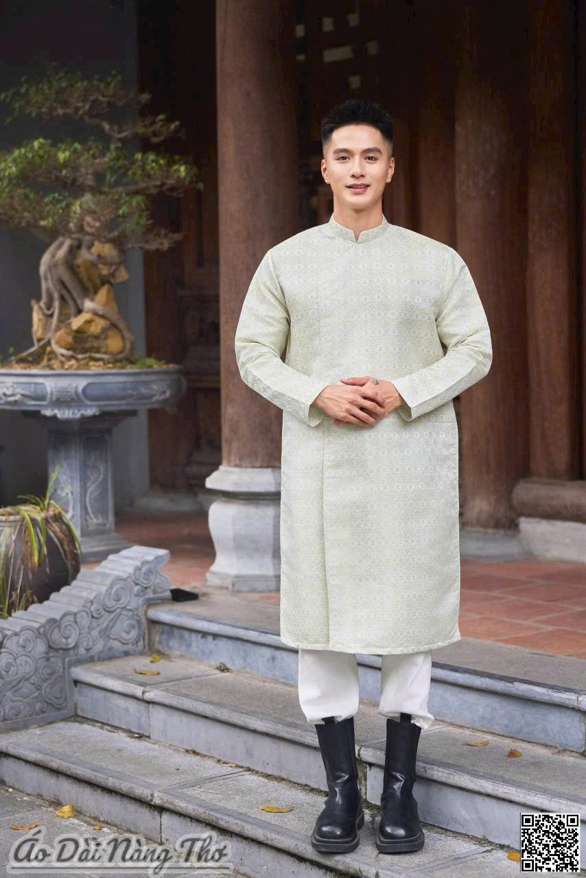 • Áo Dài Nam Tafta Xanh Họa Tiết Nhí