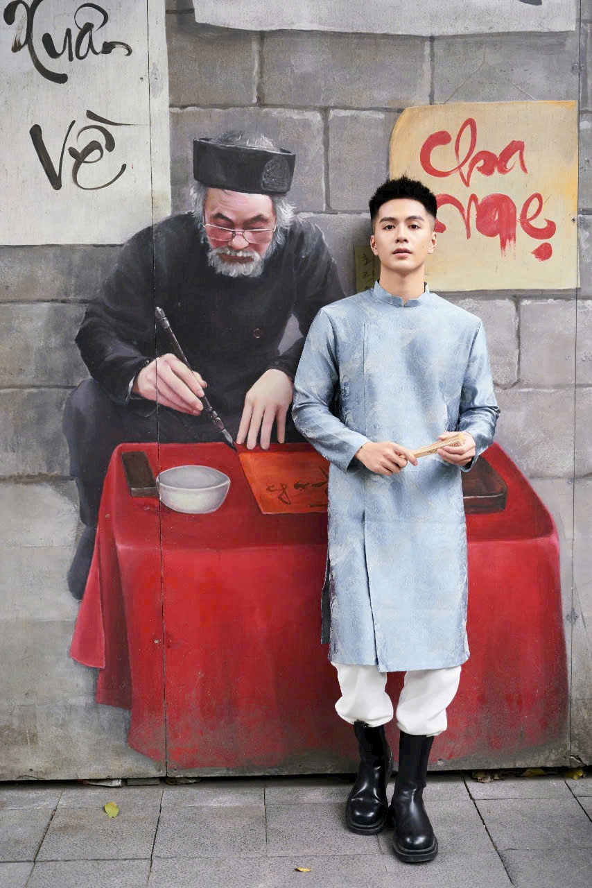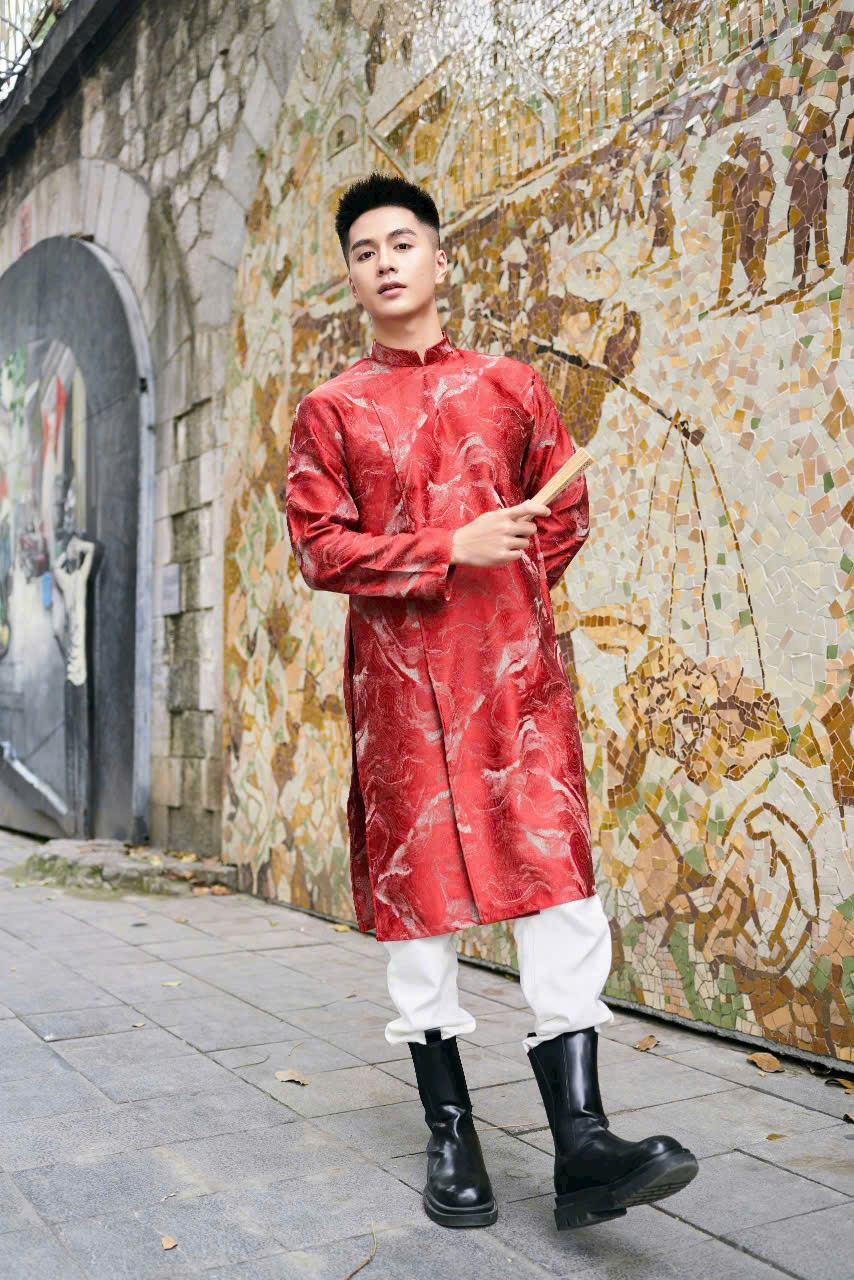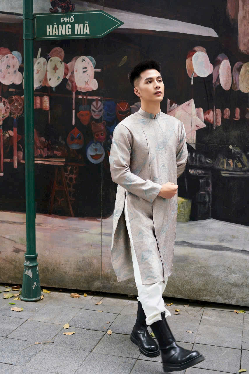 • Áo Dài Nam Vải Tafta Vân Hoa