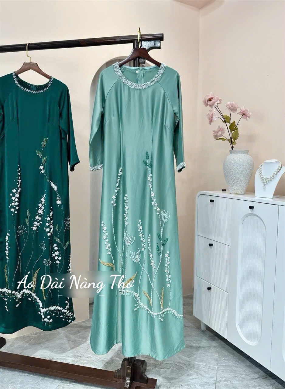 • Áo Dài Bà Sui Lụa Cao Cấp Đính Họa Tiết Trẻ Trung Hiện Đại