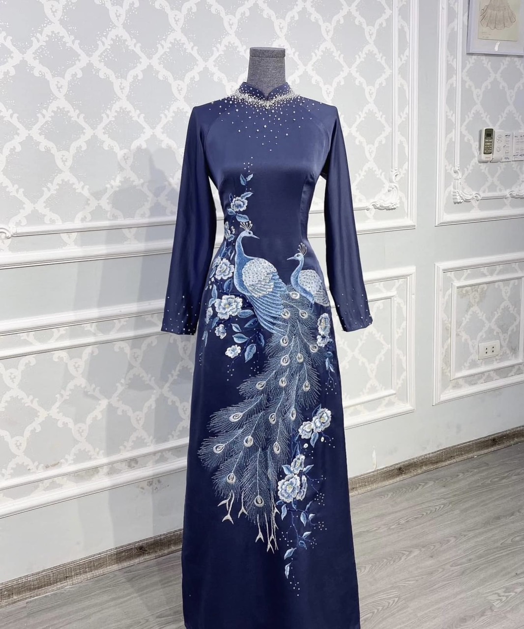 Áo Dài Bà Sui Lụa Cao Cấp Họa Tiết Chim Công Sang Trọng