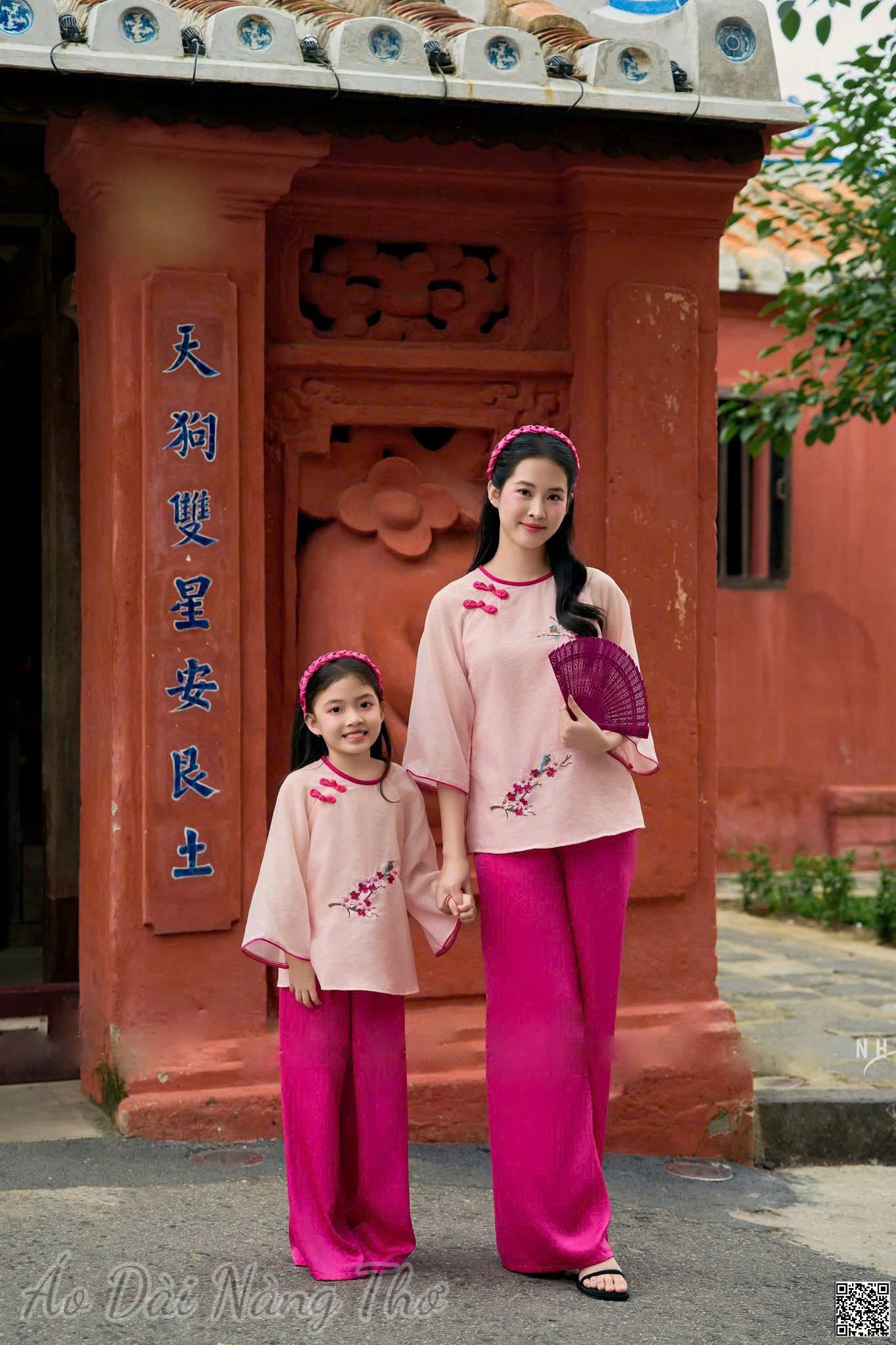 • Pháp Phục Lụa Hồng Sen Thêu Hoa Phối Nút Tàu (Không kèm áo bé)